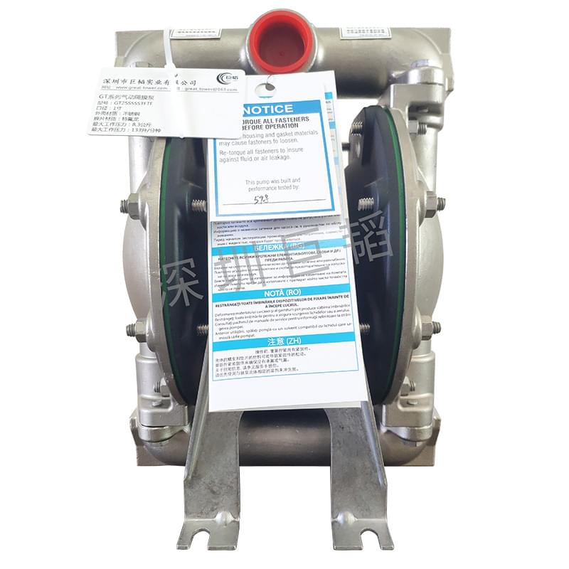 Install the pump on a flat table, fix the foot, and connect the material inlet and outlet pipe (suggestion for material inlet and outlet: install 30-50cm long elastic hose (or flexible joint) to protect the pump, reduce and reduce vibration, avoid bolt loosening and leakage), tighten all screws on diaphragm pump (to prevent bolt loosening during transportation), and then connect air source.
